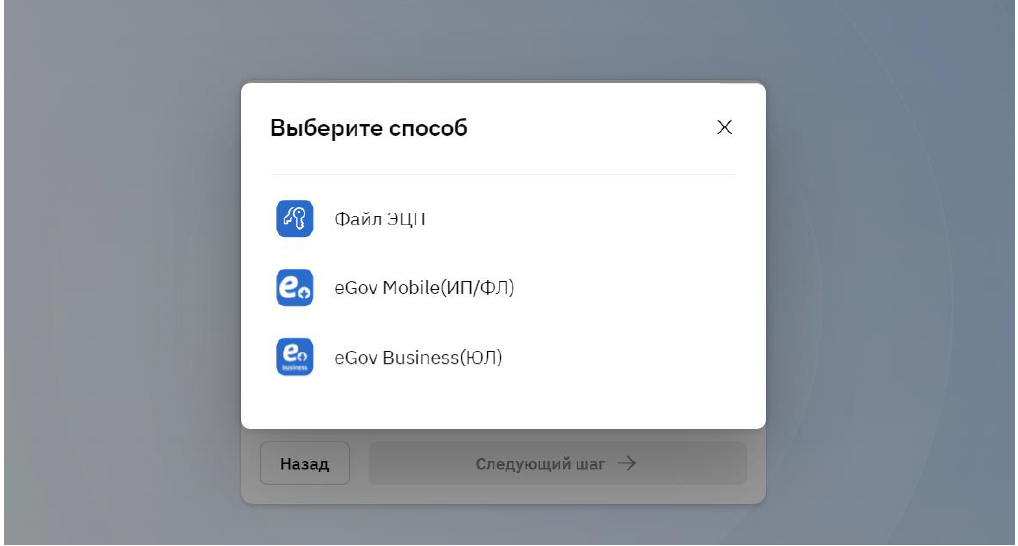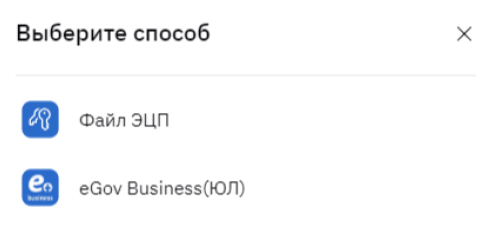 • eGov Business (ЮЛ) если вы юридическое лицо (ТОО), и используете приложение eGov Business для хранения ЭЦП, выберите этот вариант.