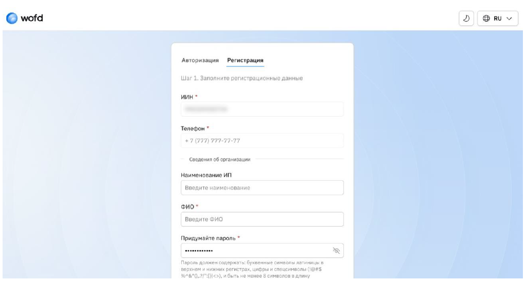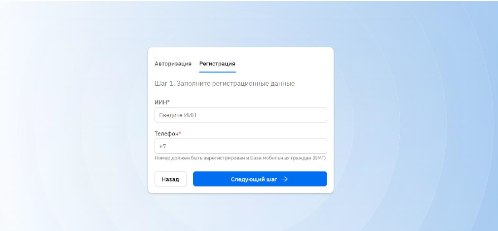 Для продолжения регистрации требуется указать ИИН и номер телефона.
