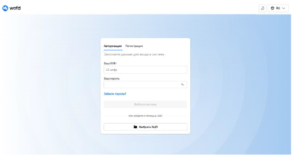 Для авторизации в системе необходимо перейти в раздел «Авторизация» и выбрать один из доступных способов входа: ввод ИИН сотрудника и пароля, указанных при регистрации, или использование ЭЦП сотрудника. При выборе авторизации с помощью ЭЦП будет предложено выбрать один из следующих способов: файл ЭЦП, eGov Mobile (для ИП и физических лиц) или eGov Business (для юридических лиц). При выборе способа использования «файла ЭЦП» необходимо выбрать файл ЭЦП, который был использован при регистрации, затем ввести пароль.