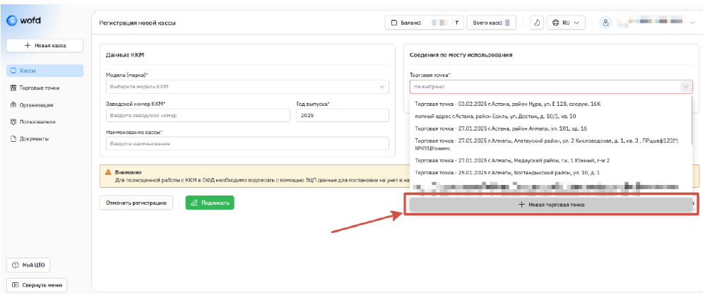 Для создания новой торговой точки необходимо нажать на «+ Новая торговая точка».